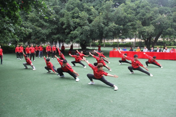 2018年11月9日上午,福建西山学校在科技楼前开展2018-2019学年第一学期跨学部教练武术技能展示活动。