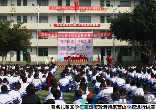 12月6日上午9时许,著名儿童文学作家伍美珍老师来我校进行讲座。讲座在西山小学操场举行,西山小学黄盛华校长,方初东副校长等领导也来到了现场,西山小学的全体师生齐聚一堂,和伍老师面对面交流,零距离接触。