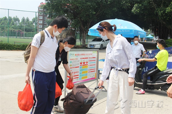 再遇,是欣喜,是激动!“同学,出示一下你的健康码!全程戴好口罩,前后保持1米距离,有序排队检测入校。”学校门口,设置了小学部和初中部两个入校通道,值班老师实行“三班倒”工作制,分别负责学生引导、健康码验证、体温测量、消毒、引导学生清洁双手、更换口罩等工作,一个不落,一步不少……西山的细心与严谨让每个家长都格外放心,时刻都在证明他们当初的选择无比正确。